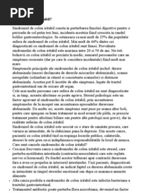 Asadar sindromul de colon iritabil poate fi tinut sub control prin alimentatie. Alimente recomandate in colonul iritabil. Există anumite alimente care pot agrava simptomele sindromului de colon iritabil și anume. Se caracterizeză prin contracţii neregulate ale musculaturii colonice care duc la strangularea haotică a diametrului şi conţinutului intestinal.