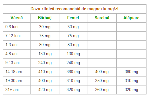 Doza zilnica de magneziu. Calciu nu este eficient daca nu este insotit de pagina 2. De exemplu pâinea albă are un conţinut scăzut de magneziu comparativ cu pâinea de secară sau graham. Expertii de peste hotare recomanda urmatoarele cantitati de magneziu. Una dintre cauzele principale ale deficitului de magneziu este alimentatia necorespun.