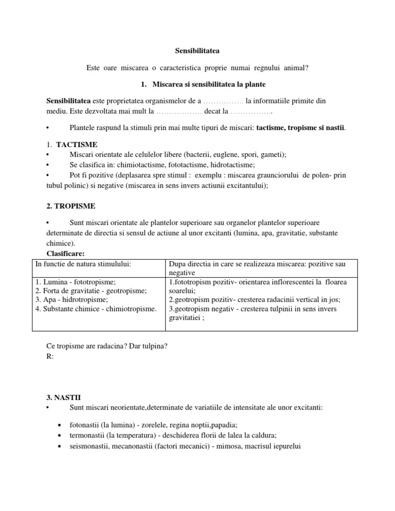 Miscarea si sensibilitatea sunt caractere generale ale materiei vii la plante miscarile sunt mai putin dezvoltate decat la animale totusi ele sunt destul de raspandite. Lumina temperatura gravitația apa. Academia edu is a platform for academics to share research papers. Caile de transmitere a excitațiilor sunt reprezentate de substanțele bioreglatoare de creștere naturale fitohormonii.