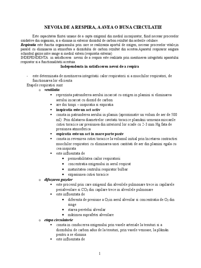 Nevoia de a respira si a avea o buna circulatie. Nevoia de a respira si a avea o buna circulatie 1. Respiratia reprezinta nevoia fiecarei finite umane de a capta oxigenul din mediul inconjurator necesar proceselor de oxidare din organism si de a elimina dioxidul de. Respiratia a respira reprezinta nevoi fiintei umane de a capta oxigenul din mediul inconjurator necesar proceselor de oxidare din organism si de a elimina dioxidul de carbon rezultat din arderile celulare. Nesatisfacerea nevoii de a respira afectează buna relaţie in celelalte nevoi.