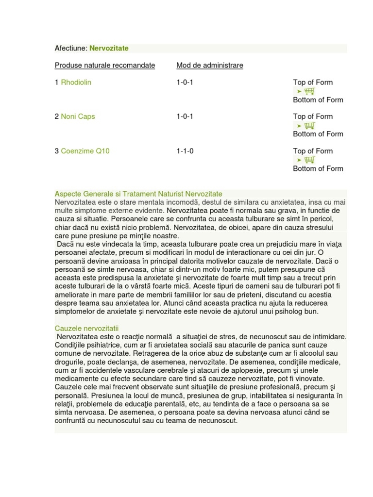 Toţi aceşti factori contribuie la afectarea sănătăţii fizice şi psihice uneori pe termen îndelungat. Nervozitatea sau iritabilitatea poate fi asociata cu diverse tulburari psihice abuz de substante sevraj efecte secundare ale medicamentelor sau boli cronice. Starile de nervozitate produc tensiuni musculare si tulburari de respiratie cu efecte imediate asupra bunastarii generale. Incearca o banana o bucatica de ciocolata neagra o lingurita de seminte de in sau un pumn de cirese amare.