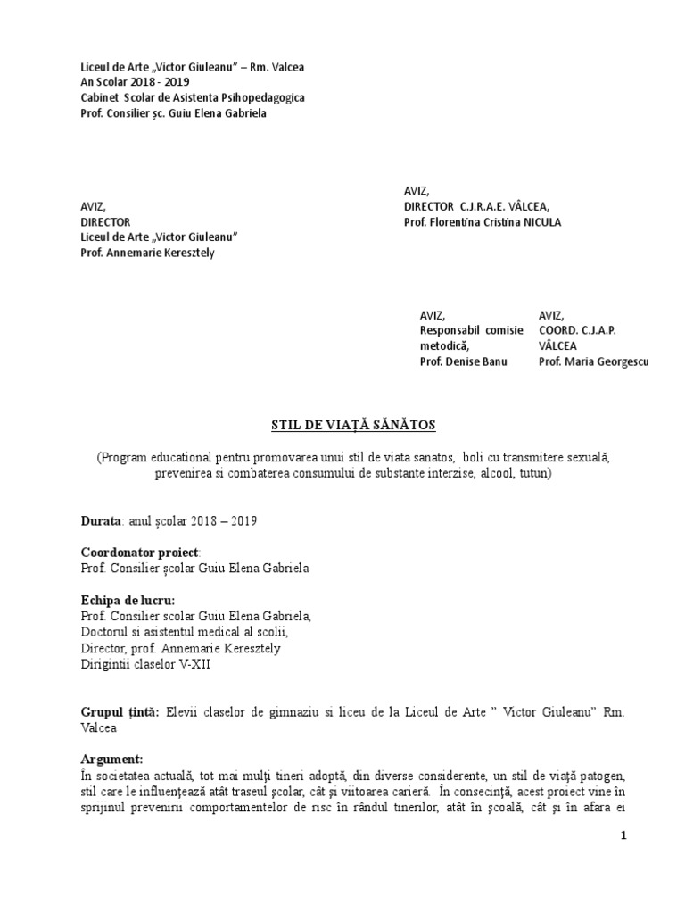 Sa renuntam prin informare educare auto educare la obiceiurile proaste nesanatoase si sa le inlocuim prin obiceiuri bune sanatoase pentru noi si cei din jurul nostru. Stil de viata sanatos proiect educativ. Mai jos poate fi vizualizat un extras din document aprox. 11 mai 2014 10 23.