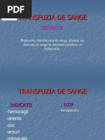 De atunci transfuziile de sange au devenit mai sigure. Indicatii restabilirea masei sanguine și asigurarea numărului de globule roșii în caz de hemoragii anemii sau stări de șoc. De sute de ani sunt efectuate experimente care implica transfuziile de sange si transferul sangelui sau a componentelor sanguine de la o persoana in fluxul sanguin al altei persoane. Transfuziile de sange reprezinta transferul de sange sau al componentelor din sange ale unei persoane in sangele unei alte persoane.